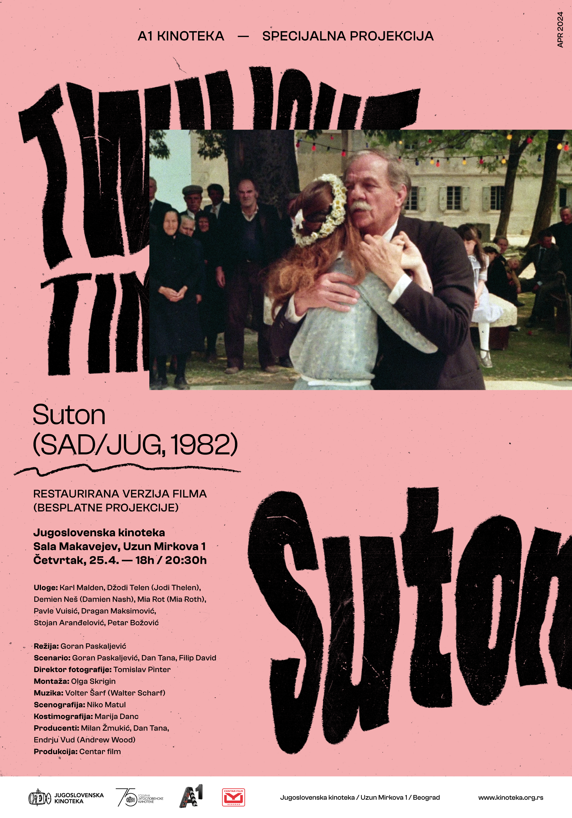 У Југословенској кинотеци, премијерно је приказан дигитално рестаурисан филм „Сутон“ (Центар филм, 1982.) Горана Паскаљевића. Присутни су аплаузом испратили пројекцију, као и обраћање Ден Тане, продуцента овог остварења, као и Петра Божовића, познатог српског глумца.