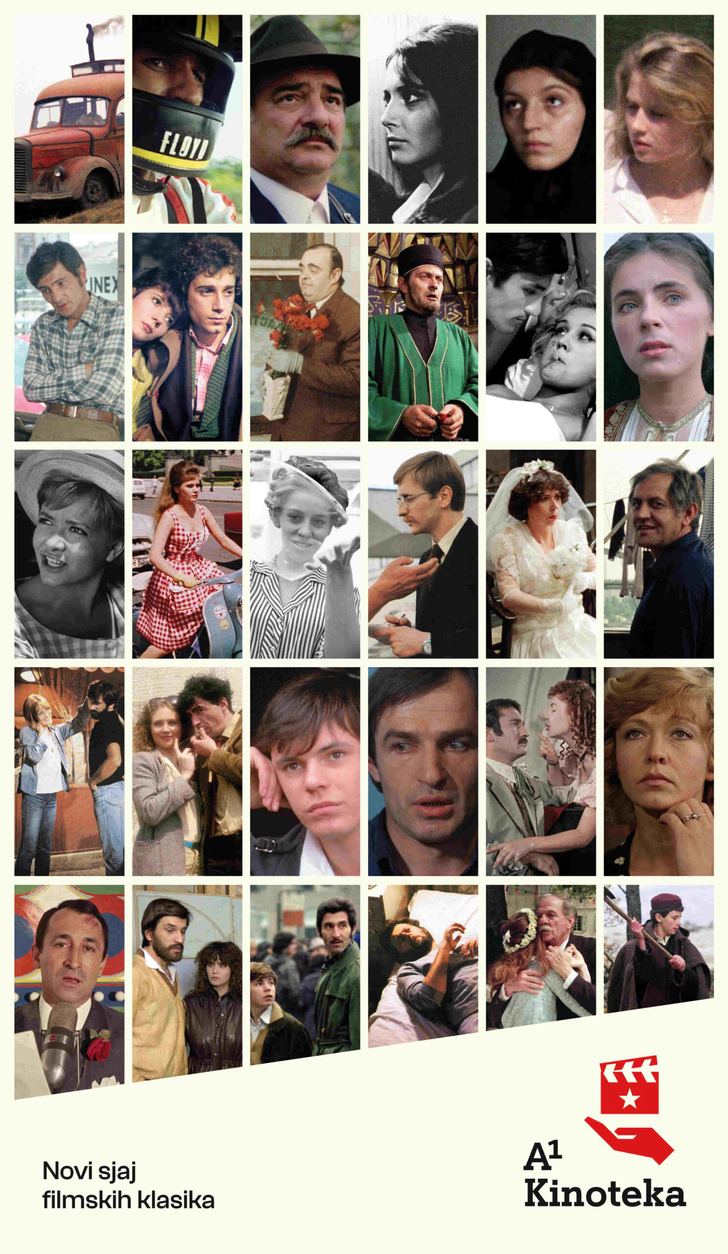 Кроз пројекат А1 Кинотека обновљено је 40 култних наслова, међу којима су ‚‚Маратонци трче почасни круг’’, ‚‚Ко то тамо пева’’, ‚‚Лепота порока’’, ‚‚Петријин венац’’, ‚‚Мајстори, мајстори!’’, ‚‚Национална класа’’, ‚‚Специјално васпитање’’, ‚‚Варљиво лето ’68’’, ‚‚Балкански шпијун’’, ‚‚Давитељ против давитеља’’, ‚‚Сабирни центар’’, ‚‚Бал на води’’, ‚‚Вирџина’’, ‚‚Тајванска канаста’’, ‚‚Када будем мртав и бео’’ и многа друга остварења која чине темеље домаће филмске уметности.