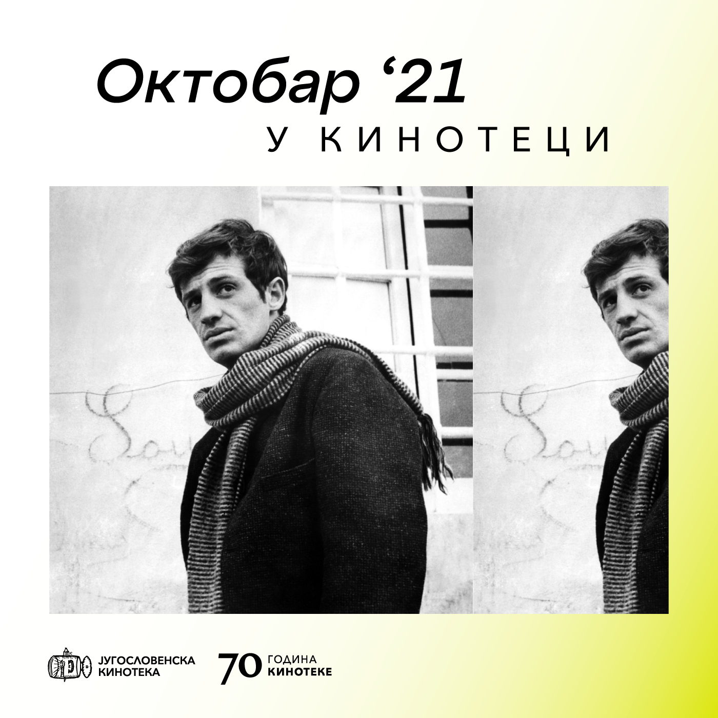 Стални програм Кинотеке Великани светског филма овог месеца посвећен је недавно преминулом француском глумцу Жан-Полу Белмонду. Програм 21. октобра започиње филмом који му је донео светску славу – „До последњег даха“ (1960) Жан-Лика Годара. До 27. октобра биће приказани и Годаров „Луди Пјеро“ (1965), „Леон Морин, свештеник“ (1961) Жан-Пјера Мелвила, „Доктор Попол“ (1972) Клода Шаброла, „Модерато кантабиле“ (1960) Питера Брука…