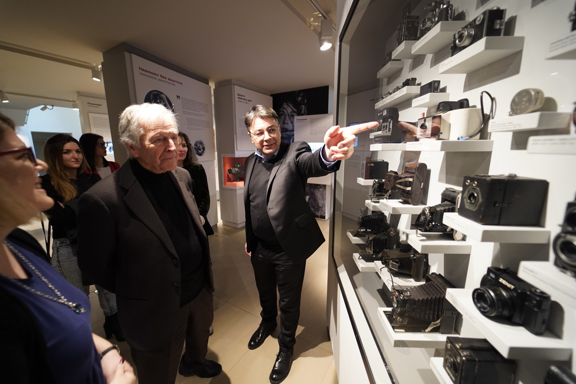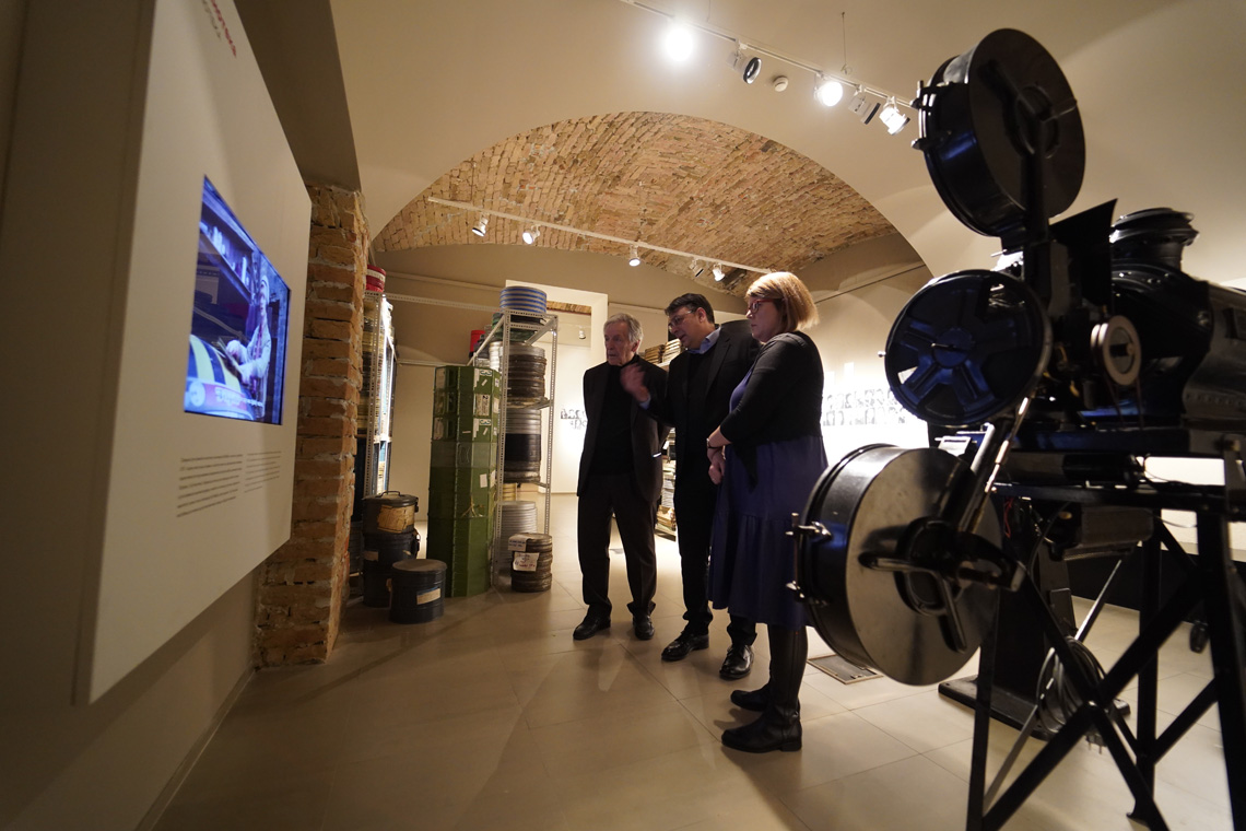 С великом пажњом Гаврас је слушао објашњења кустоскиње Миље Стијовић, директора Пантелића, управника Архива кинотеке Александра Саше Ердељановића и управника Музеја кинотеке Марјана Вујовића.