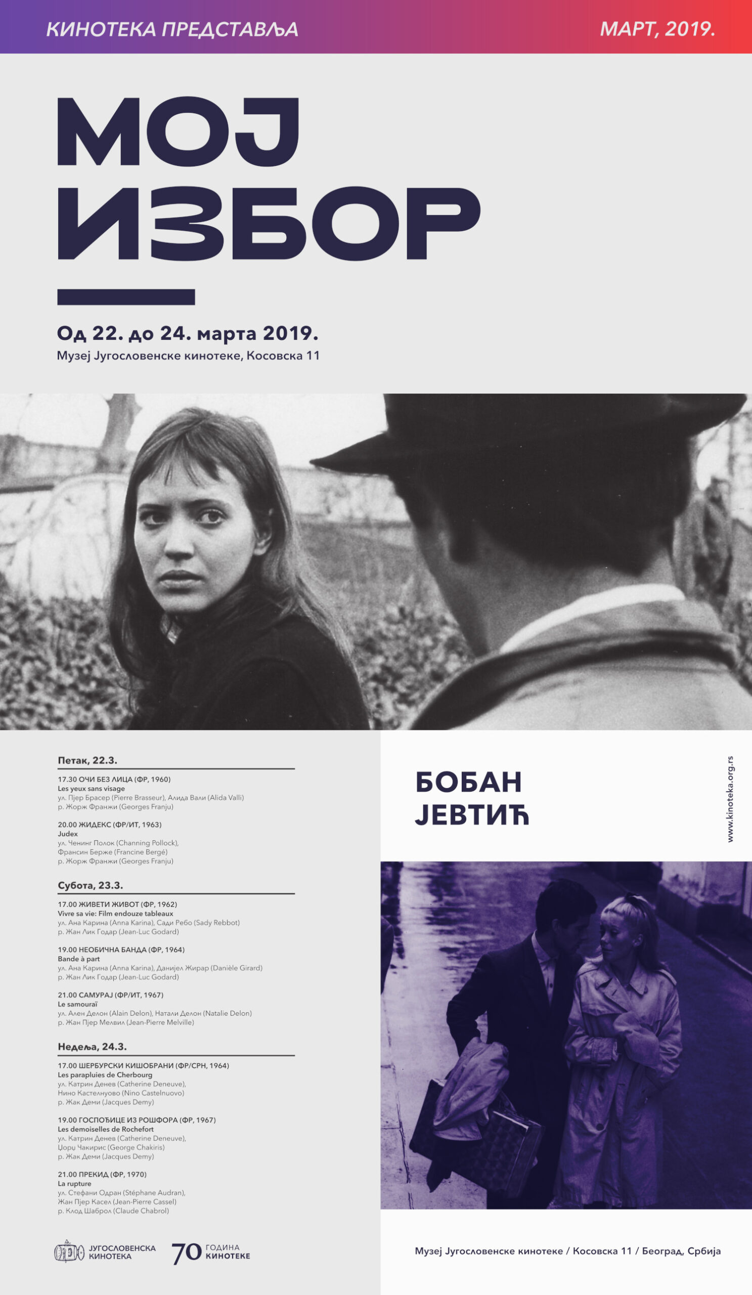 Директор Филмског центра Србије Бобан Јевтић представља у програму „Мој избор” нека од ремек-дела француске кинематографије. У интервјуу за „Кинотеку” изјавио је да је везан за француску културу и да воли „тај спој лежерности и интелектуализма, хумора и претенциозности”, говорио је о свом омиљеном аутору Шабролу, као и о билатералном споразуму о сарадњи српских и француских синеаста и о улози филмских архива, међу којима, како је оценио, Југословенска кинотека спада у сам европски, па и светски врх.