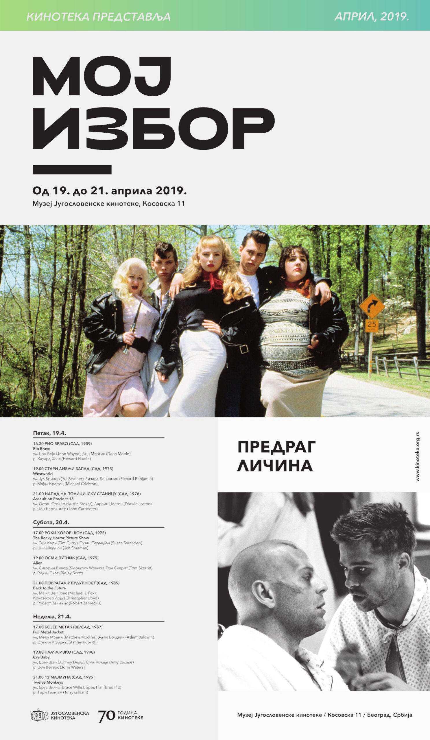 Хрватски редитељ и сценариста Предраг Личина уврстио је у програм „Мој избор” жанровске филмове америчко-британске продукције које највише воли, али је у интервјуу за Кинотеку навео и низ омиљених остварења из целог света. Аутор хит филма Последњи Србин у Хрватској говорио је и о поруци коју за јужнословенске народе носи та зомби комедија, о утицају Серђа Леонеа и Џона Карпентера на његов рад, значају доброг сценарија, улози филмске критике и маркетинга.