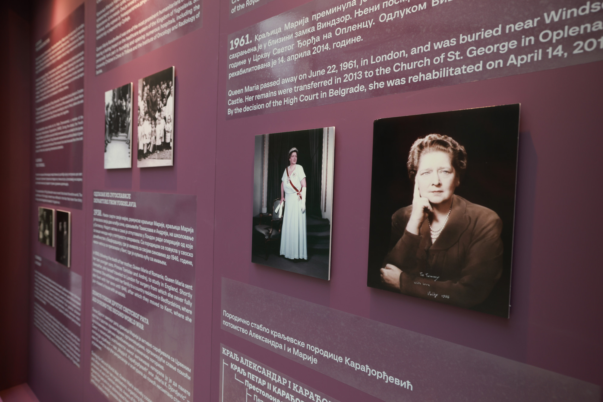 Мултимедијална изложба посвећена југословенској краљици Марији Карађорђевић (1900-1961) свечано је отворена 4. новембра у Југословенској кинотеци поводом 125 година од рођења у народу омиљене краљице и добротворке. Поставка ауторке Ирине Кондић састоји се из историјског дела и документарног филмског материјала.