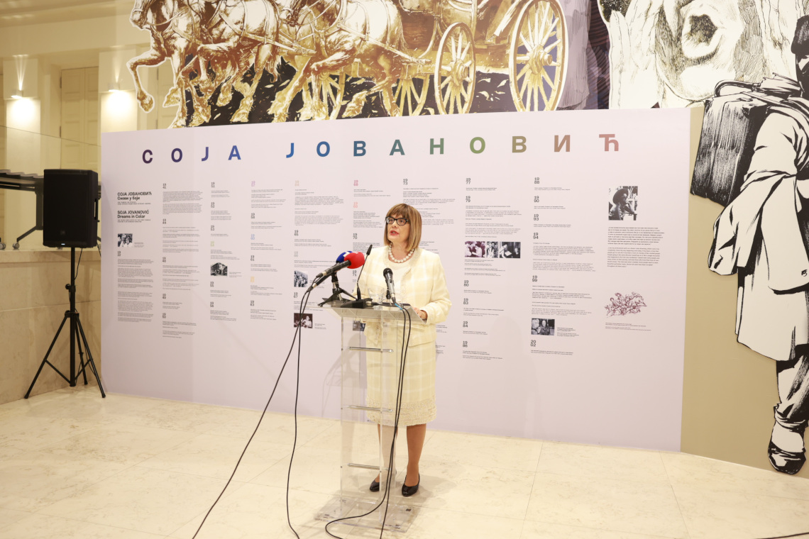 Како је подсетила, Соја Јовановић је одрастала у уметничкој породици, што је утицало на њен животни и професионални пут. Њен деда-стриц, чувени сликар Паја Јовановић мотиве за своја ремек-дела проналазио је у нашој традицији. „По угледу на њега је и наша најпознатија редитељка инспирацију за своје радове налазила у делима великих српских писаца, као што су Бранислав Нушић, Стеван Сремац, Бранко Ћопић или Јован Стерија Поповић“, рекла је министарка додавши да су тако настали класици домаће кинематографије „Сумњиво лице“, „Поп Ћира и поп Спира“, „Др“, „Орлови рано лете“, „Силом отац“…