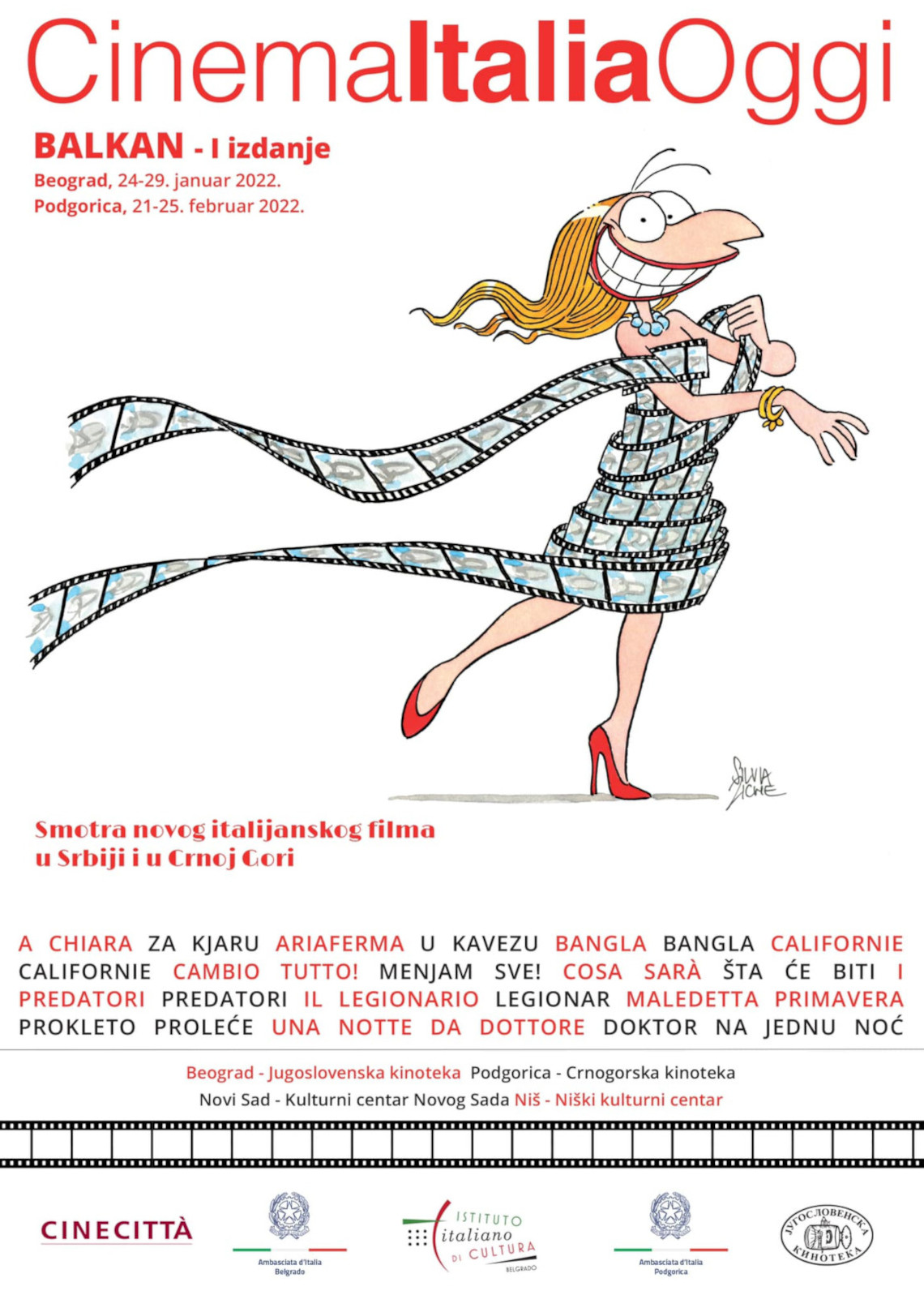 Смотра CinemaItaliaOggi Балкан отвара се 24. јануара у 20.00 часова пројекцијом филма „Проклето пролеће“ (2020) Елизе Аморузо. У наредним данима уследиће „Мењам све!“ (2020) Гвида Кјезе, „За Кјару“ (2021) Џонаса Карпињана, „У кавезу“ (2021) Леонарда ди Костанца, „Бангла“ (2019) Фаима Буијана, „Californie“ (2021) Алесандра Касиголија и Кејсија Кауфмана, „Легионар“ (2021) Хлеба Папоуа, „Предатори“ (2020) Пјетра Кастелита, „Шта ће бити“ (2020) Франческа Брунија и „Доктор на једну ноћ“ (2021) Гвида Кјезе.