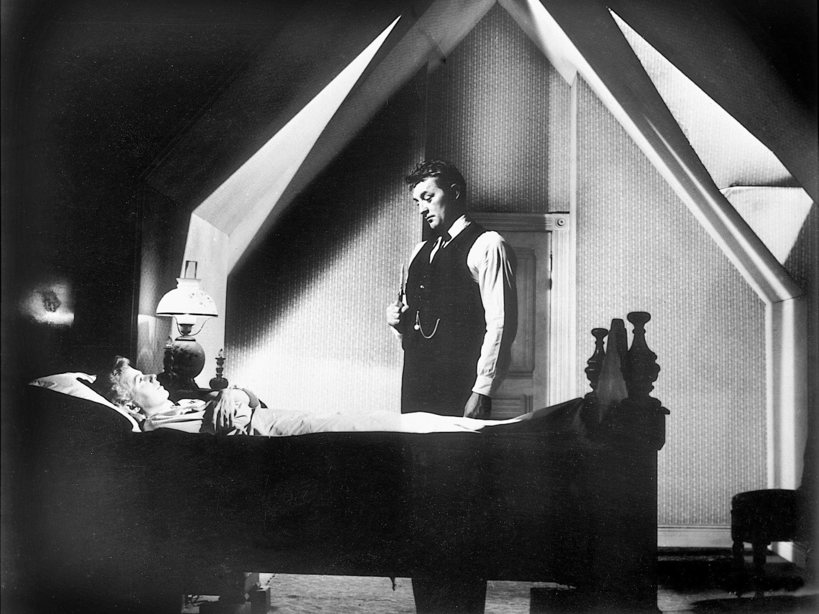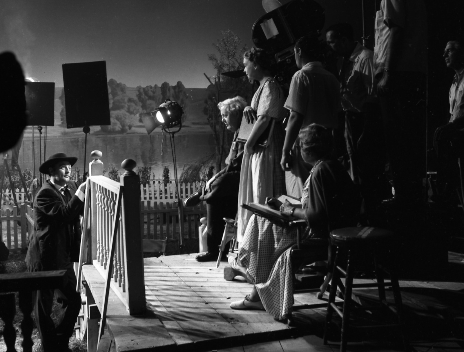 Лилијан Гиш и Чарлс Лотон на снимању филма „Ноћ ловца“