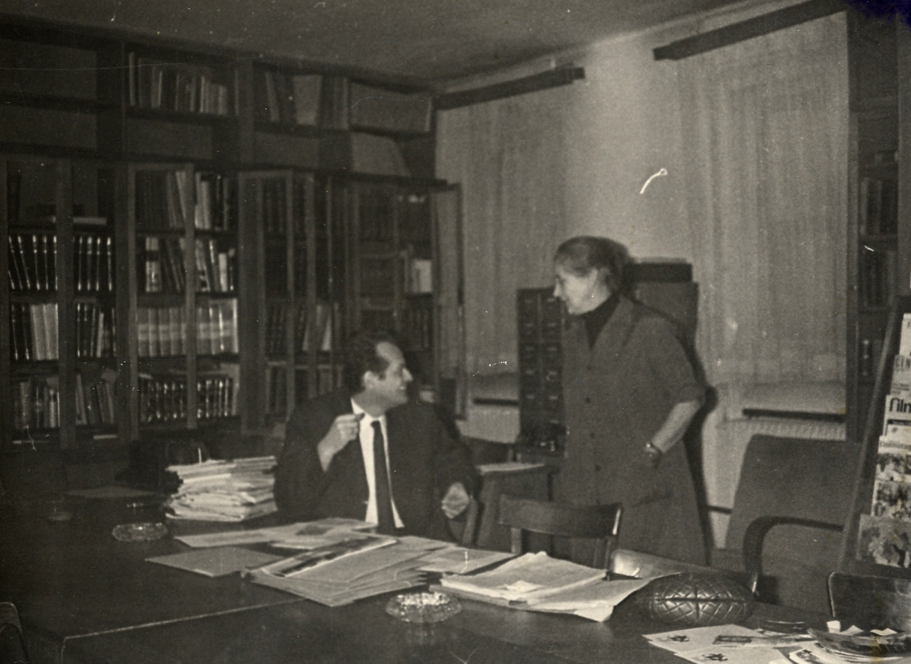 Стеван Јовичић и Олга Добровић у библиотеци Југословенске кинотеке