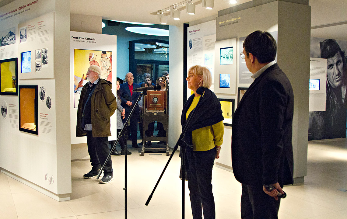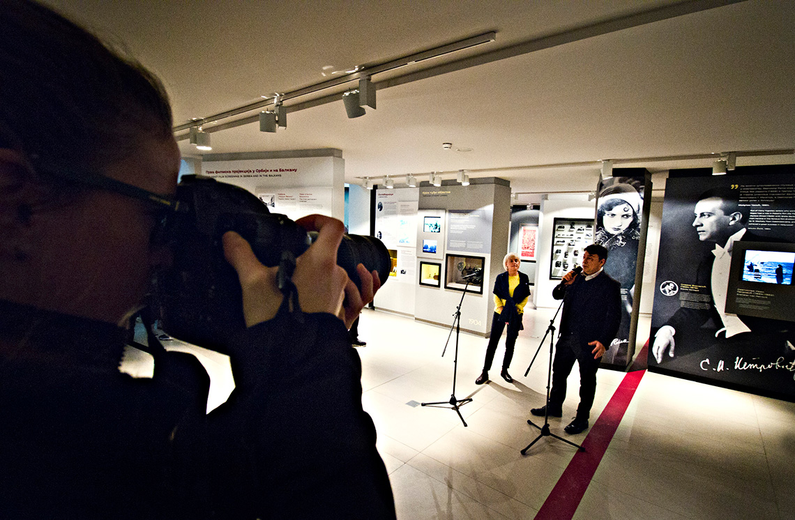 Уз поменуте предмете из 19. и с почетка 20. века, део изложбе посвећен је раним биоскопима и пионирима филма на овим просторима, а посебан акценат је на првом српском играном филму „Карађорђе“ (1911). У осталим целинама представљен је  документарни филм из времена балканских ратова и Првог светског рата, затим успех наших уметника у свету, Београд на филму у међуратном периоду, филмски журнали и рекламе, као и продуцентске куће.