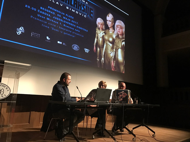 Госте и публику на промоцији поздравила је координаторка програма Кинотеке Ксенија Зеленовић. Она је најавила да ће у новом броју часописа Кинотека изаћи текст о Симовићевој филмској музици из пера критичарке Светлане Ђоловић, као и да ће плоча моћи да се купи у књижари Кинотеке у Узун Мирковој улици.