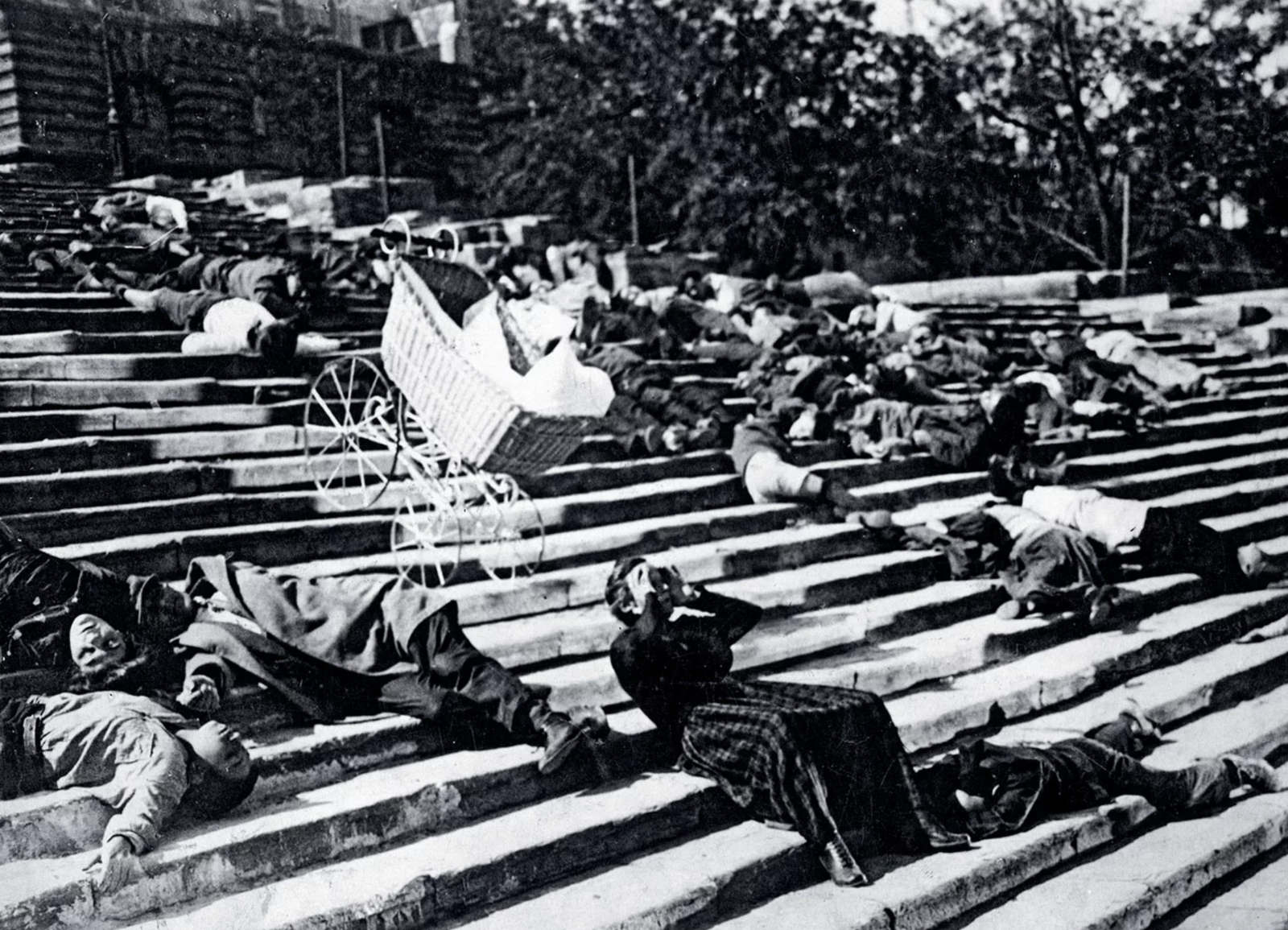 Следи „Оклопњача Потемкин / Крстарица Потемкин“ Сергеја Ејзенштајна, о побуни морнара у револуционарној атмосфери 1905. године. Када њихов брод пристане у Одеси побуна се прелива на улице, што изазива акцију царске војске против грађана и посаде Потемкина.