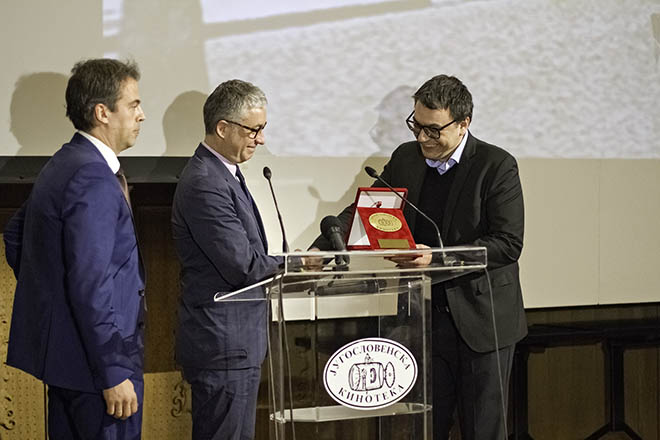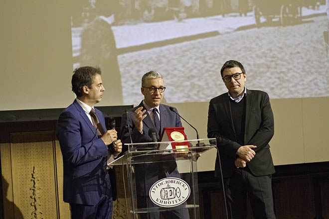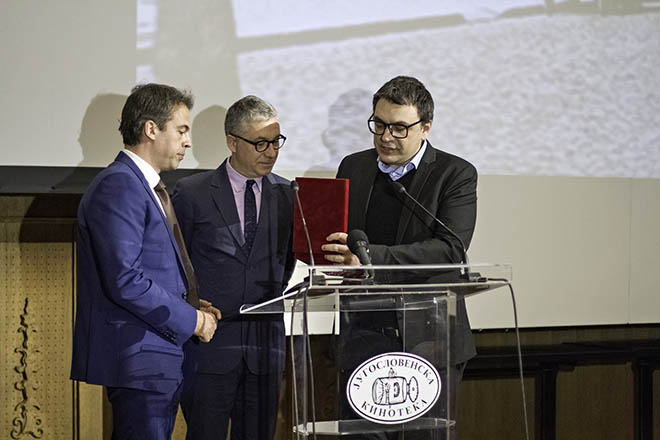 “Велико је задовољство што на почетку 2017. године имам прилику да предам највише признање Југословенске кинотеке човеку који је сву своју досадашњу каријеру, а надам се и ону која следи, посветио седмој уметности, филму и очувању филма. То је нешто чему стремимо и ми и чини ми се да смо успешни у томе као и наш гост”, рекао је Пантелић.
